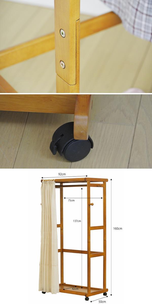 H-2030 2 カーテン付きハンガーラック ブラウン