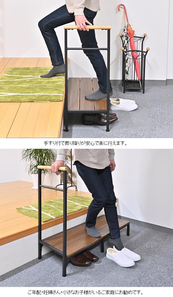 フクダクラフト 踏み台 玄関 台 介護 用品 ステップ 収納 手すり付き 両手すり 片手すり クロシオ"