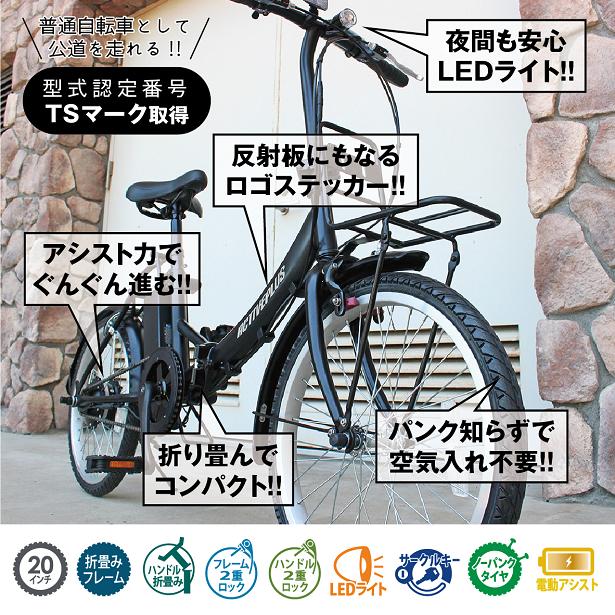 BM-AZ300-MBK SUISUI 20インチ 電動アシスト 折畳み自転車 シマノ製6段変速 マッドブラック