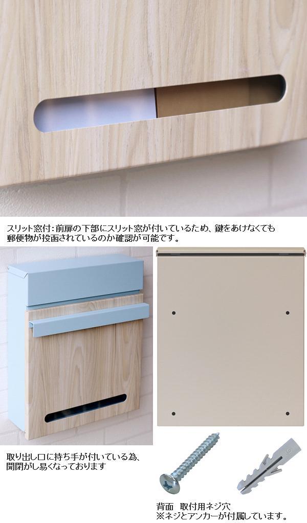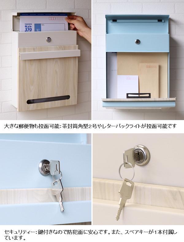 MOJYU WM-002 壁掛けポスト Lucca ルッカ スカイブルー/ホワイト木目 WM002