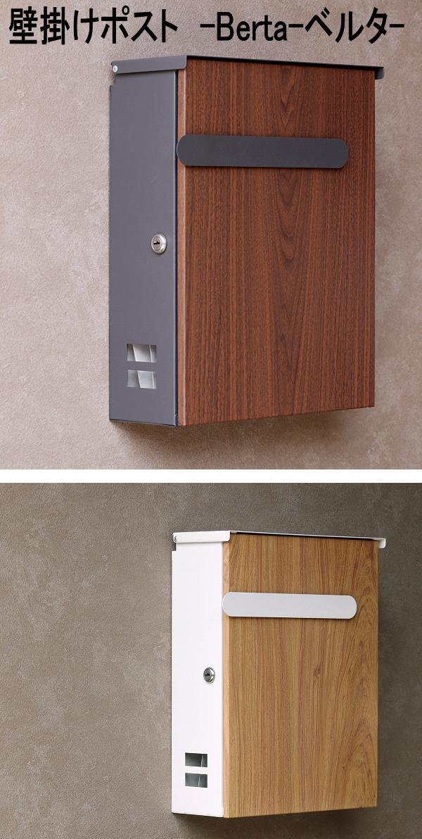 MOJYU WM-008 壁掛けポスト Berta ベルタ ダークグレー/ブラウン木目 WM008【送料無料(北海道・沖縄・離島を除く)】【メーカー直送品】【郵便ポスト メールボックス MAIL BOX 郵便受け】