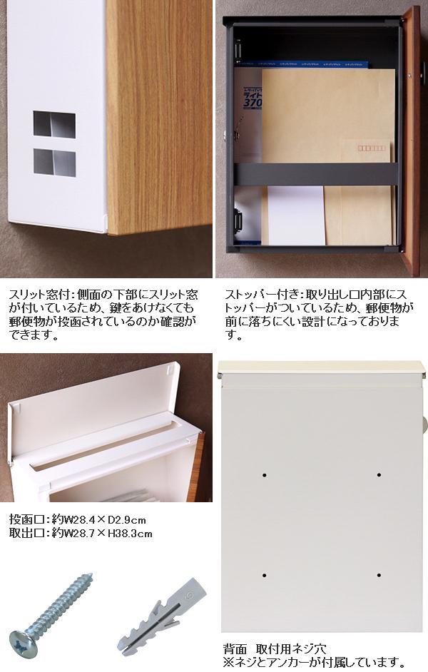 MOJYU WM-037 壁掛けポスト Enrico エンリコ ホワイト/ブラウン木目 WM037