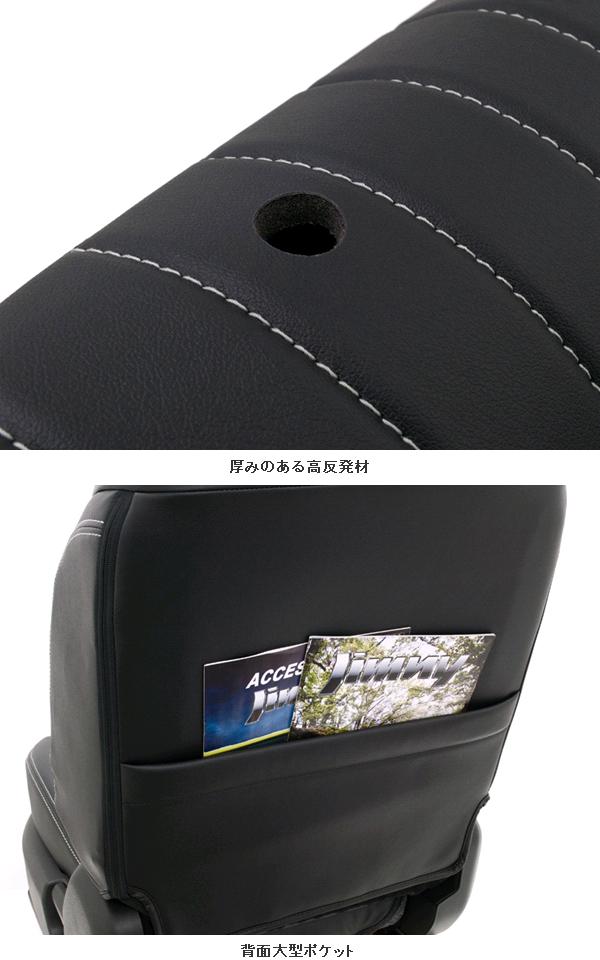 初代ジムニーのシートを彷彿させる伝統的な縦ラインシートカバー