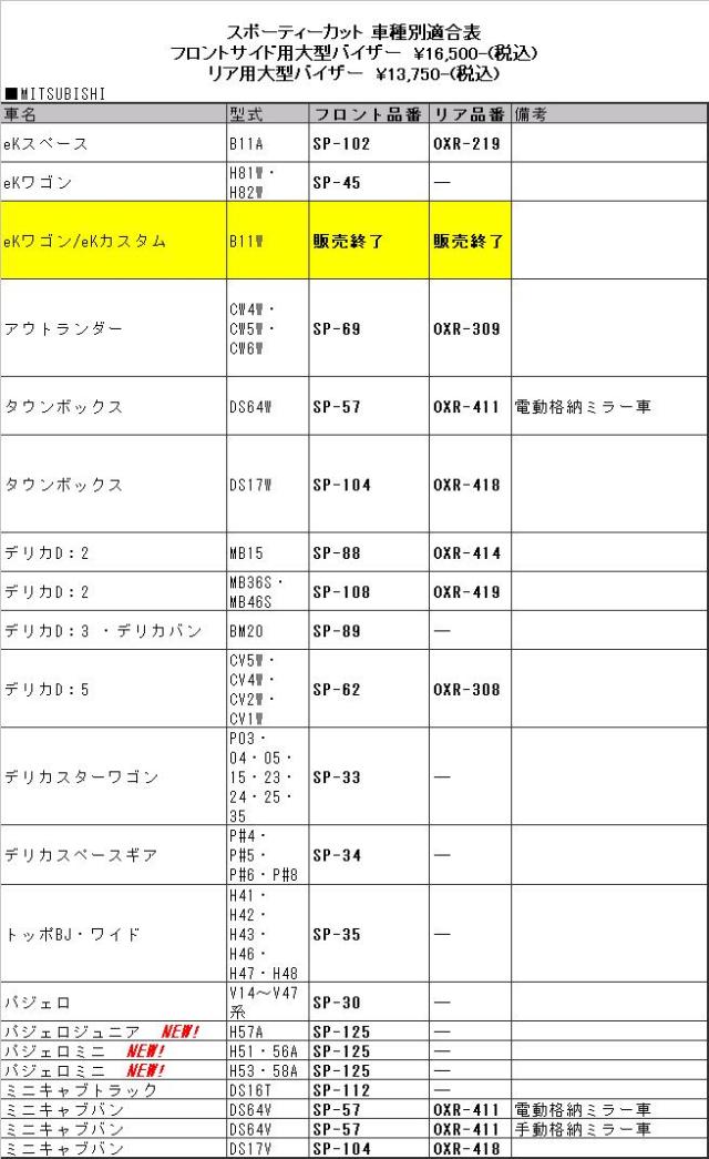 OXバイザー オックスバイザー スポーティーカット フロント用 ミツビシ車