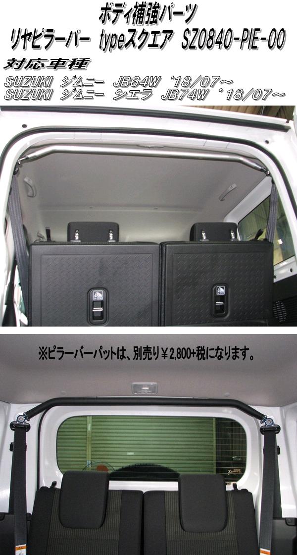 ボディ補強パーツ スズキ ジムニー・ジムニーシエラ専用 リヤピラーバー typeスクエア SZ0840-PIE-00