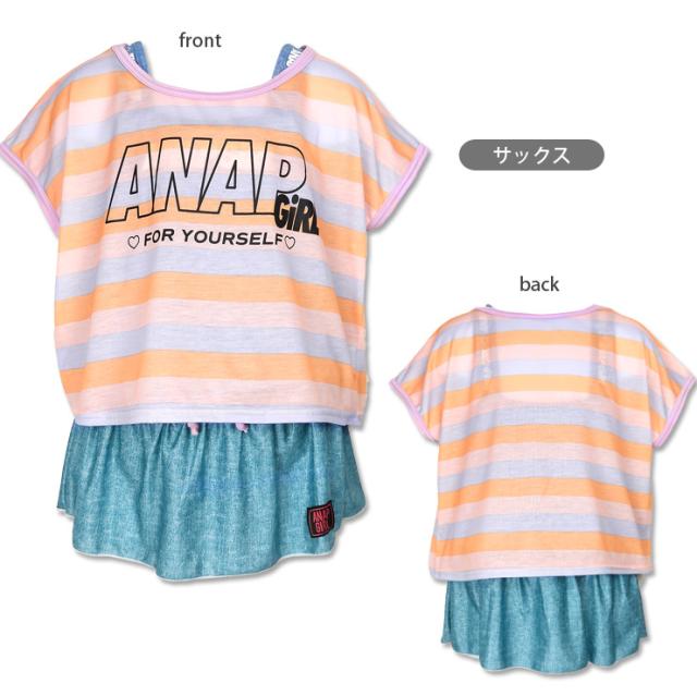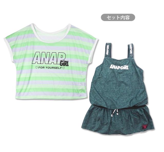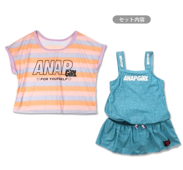ANAP GIRL キッズ・ジュニア用ワンピース水着セット 140 150 160 アナップガール 36085 スカート Tシャツ ネイビー サックス No.sw3306