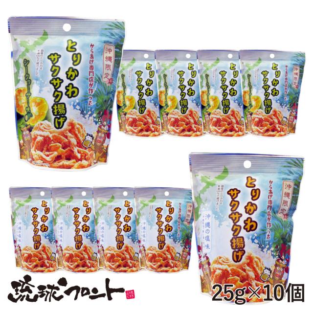 とりかわサクサク揚げ 25g×10個セット(シークワーサー味×5個、沖縄の塩味×5個) 沖縄 おつまみ 琉球フロント おやつ まとめ買い 大分からあげ