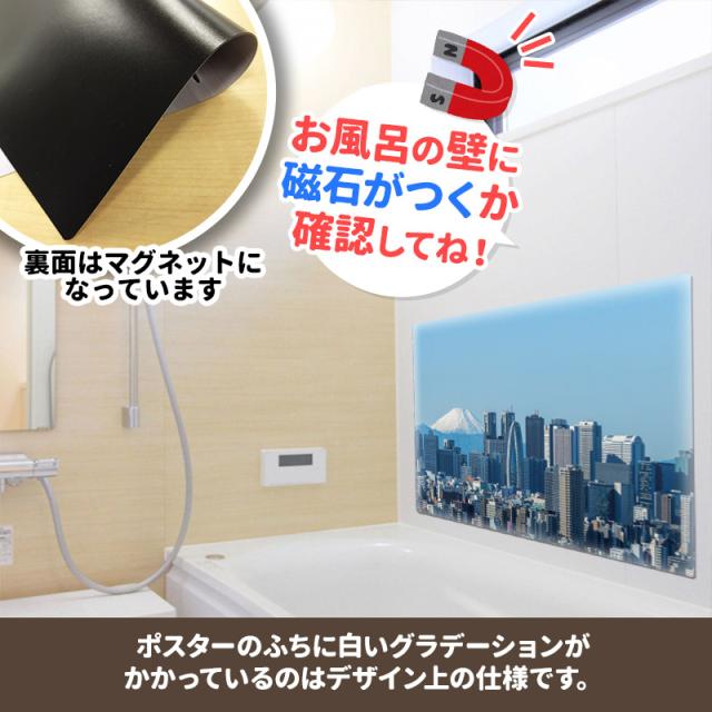 お風呂で使えるマグネット製のポスターです。 ■商品サイズ:約570×800mm ※本製品はマグネットを使用しています。タイルや木製等、磁石がつかない壁面にはご使用いただけませんので、ご使用になる場所に磁石がつくことをご購入前にご確認ください。 |