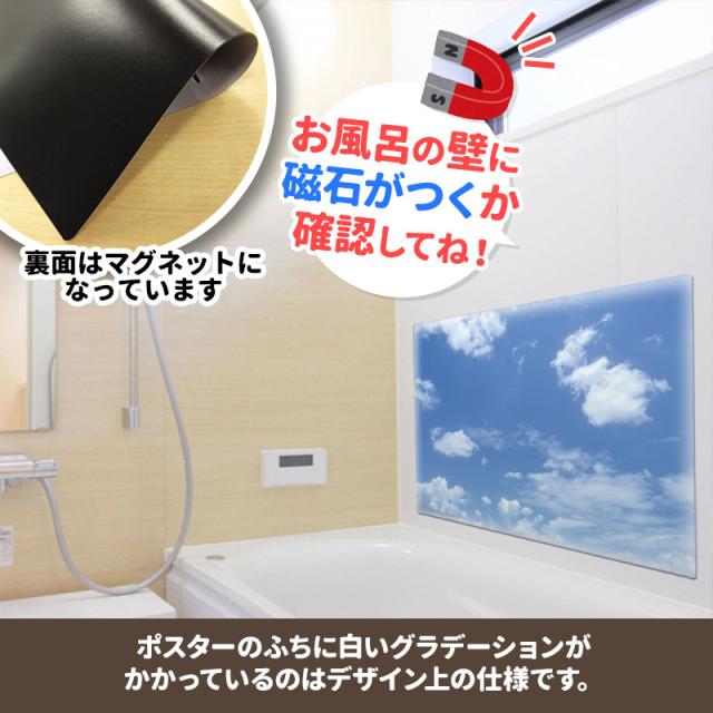 お風呂で使えるマグネット製のポスターです。 ■商品サイズ:約570×800mm ※本製品はマグネットを使用しています。タイルや木製等、磁石がつかない壁面にはご使用いただけませんので、ご使用になる場所に磁石がつくことをご購入前にご確認ください。 |