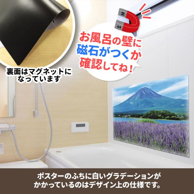 お風呂で使えるマグネット製のポスターです。 ■商品サイズ:約570×800mm ※本製品はマグネットを使用しています。タイルや木製等、磁石がつかない壁面にはご使用いただけませんので、ご使用になる場所に磁石がつくことをご購入前にご確認ください。 |