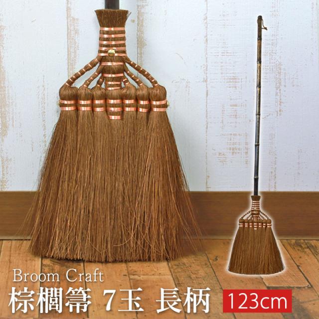 棕櫚箒 鬼毛 7玉 123cm 長柄 ほうき 室内 シュロ しゅろほうき ホウキ おしゃれ Broom Craft 天然素材 和箒 玄関 掃き掃除 掃除道具 掃除グッズ シンプル 新築祝い 深海産業 和歌山県 紀州伝統デザイン棕櫚箒