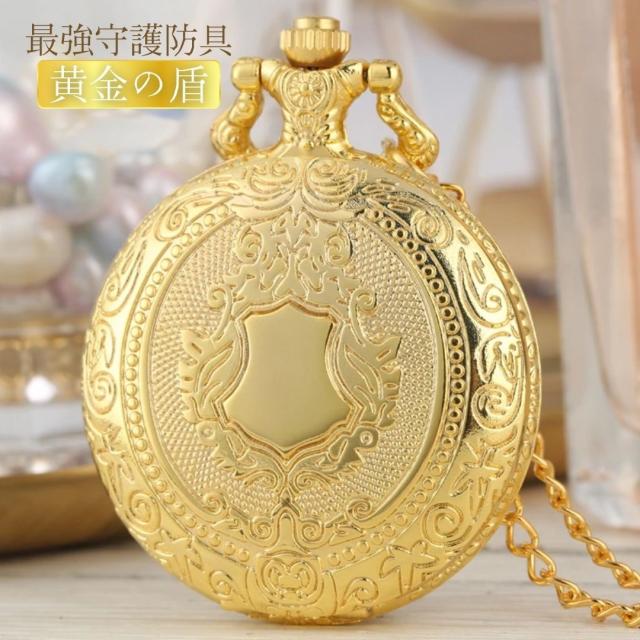 懐中時計 黄金の盾 シールド アンティーク ゴールド チェーン付き 高耐久性 文字盤 メンズ レディース ユニセックス レトロ クラシック ヴィンテージ感 ペンダント 長持ち おすすめ おしゃれ 時計 キーホルダーウォッチ シンプル
