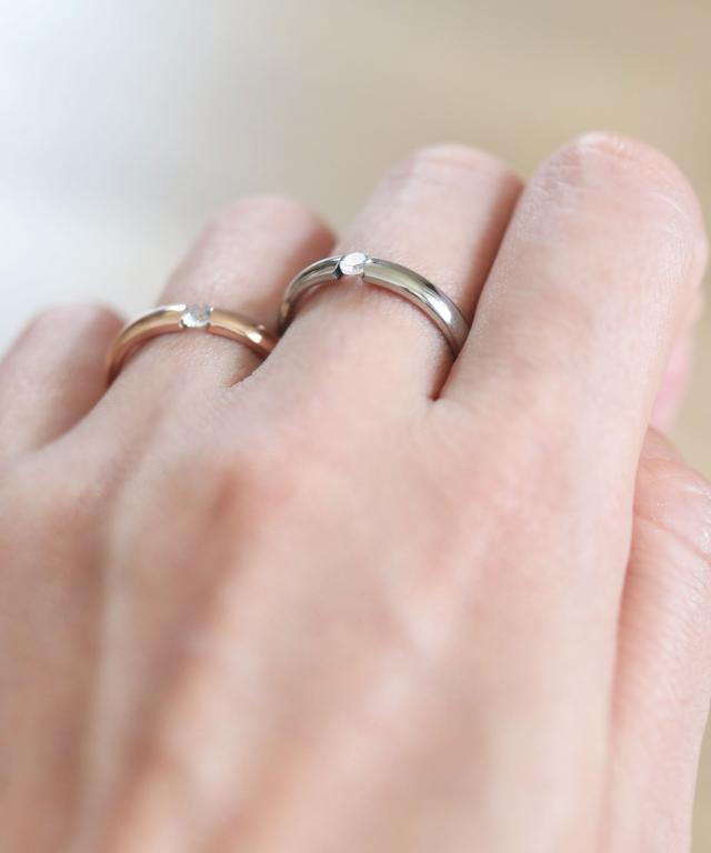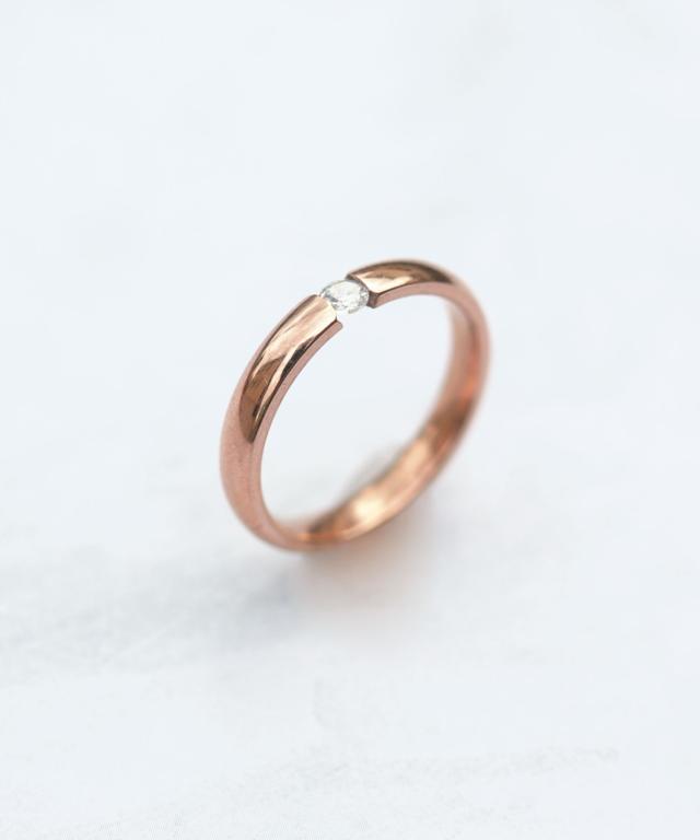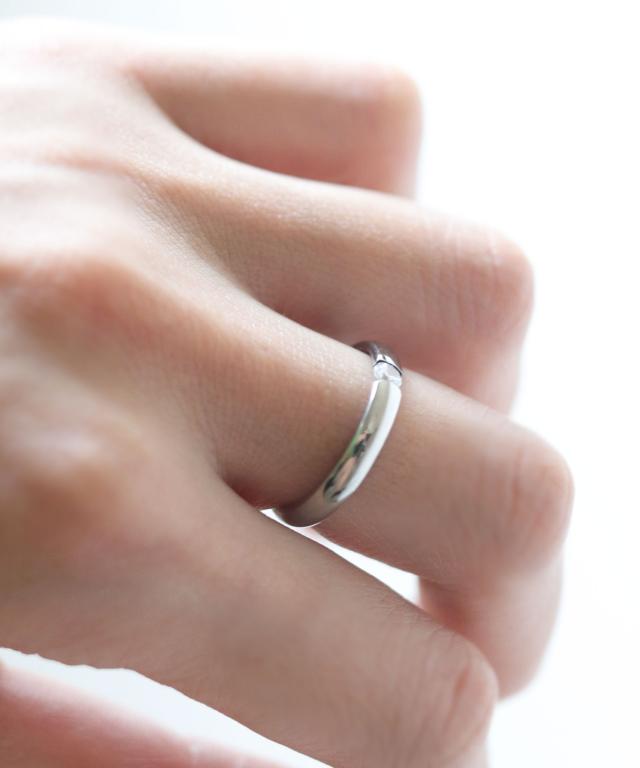 小ぶりな一粒ダイヤに、程よい光沢が大人クールな印象のリング。