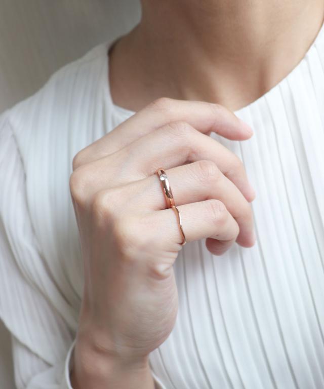 【一粒ダイヤが手元で煌めくリング】