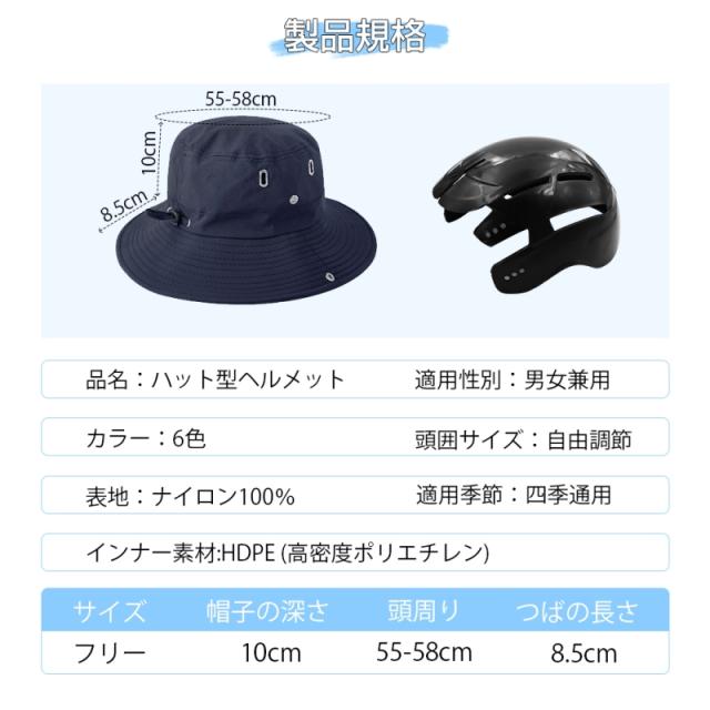 ハット型ヘルメット 自転車用ヘルメット 帽子タイプ 通気性抜群 蒸れない 軽量 紫外線対策 おしゃれ あご紐付き 防災ヘルメット 安全帽子