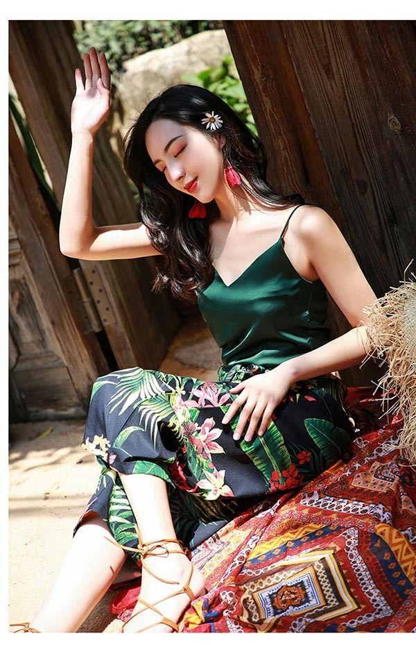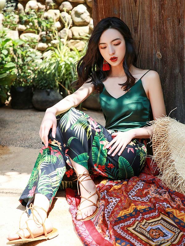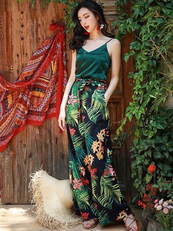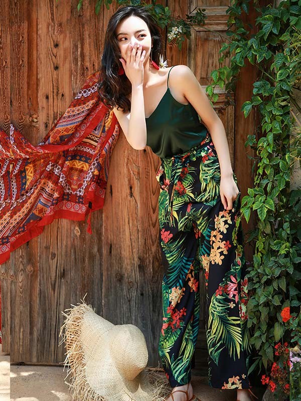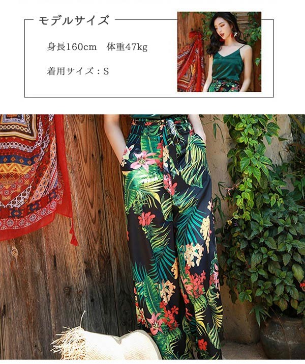 【レビュー投稿で+5%還元】タイパンツ ヨガパンツ レディース ボタニカル柄 リーフ 葉っぱ ヨガ ウェア ヨガパン ワイドパンツ スポーツ コットンシルク 接触冷感 快適 綿 ヨガパンツ ライン柄 沖縄旅行 ボヘミアン タイ おしゃれ ゆったり グリーン 緑 S M L XL 2XL