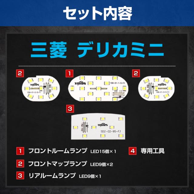 デリカミニ B34A B35A B37A B38A 専用 LED ルームランプ セット 3段階光量調整 DELICA MINI 室内灯 専用工具付 カスタム パーツ アクセサリー ドレスアップ 三菱