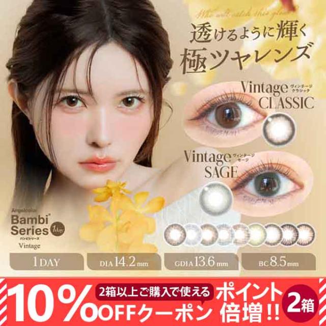 (10%OFFクーポン!)3箱30枚【2箱+1箱プレゼント】計30枚 カラコン エンジェルカラーバンビシリーズ ワンデー ナチュラル/ヴィンテージ 度あり 度なし 1day カラーコンタクトレンズ 14.2mm 1日交換 使い捨て 益若つばさ