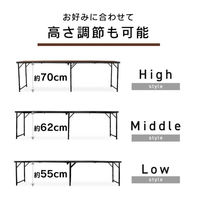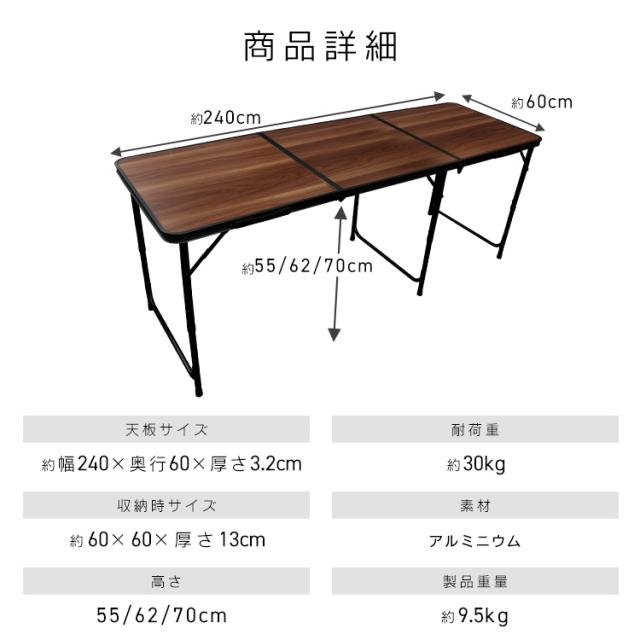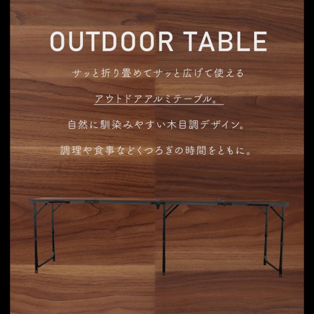 アウトドア テーブル 折りたたみ ウッド アウトドアテーブル 木目 240×60cm 高さ3段階 レジャテーブル ピクニックテーブル 机 作業台 軽量 アルミテーブル 高さ調節 キャンプ テーブル 運動会 お花見 キャンプ BBQ MERMONT WEIMALL