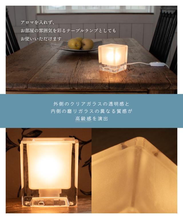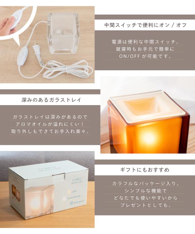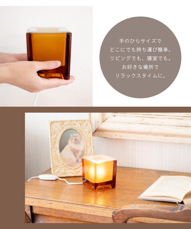 アロマランプ アロマライト テーブルランプ コード おしゃれ シンプル アロマ ランプ テーブル 照明 間接照明 卓上 ガラス アンバー ブラウン クリア 透明 ホワイト 白 インテリア 雑貨 香り 癒し 寝室 安眠 プレゼント ギフト CUBICO クービコ
