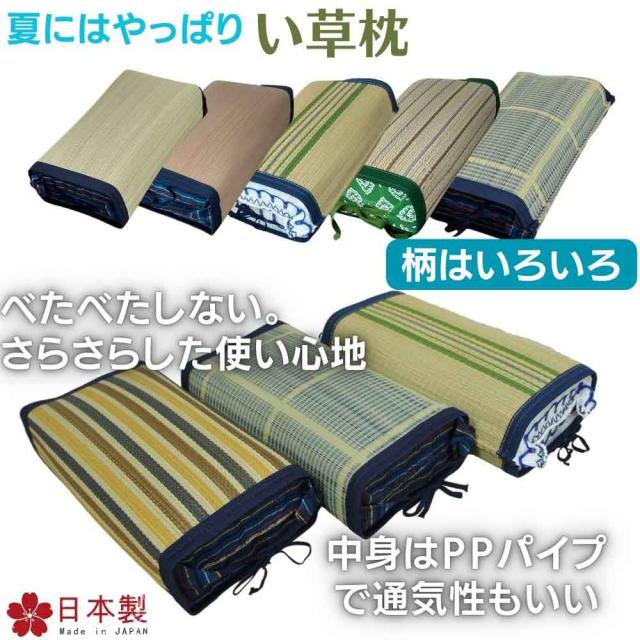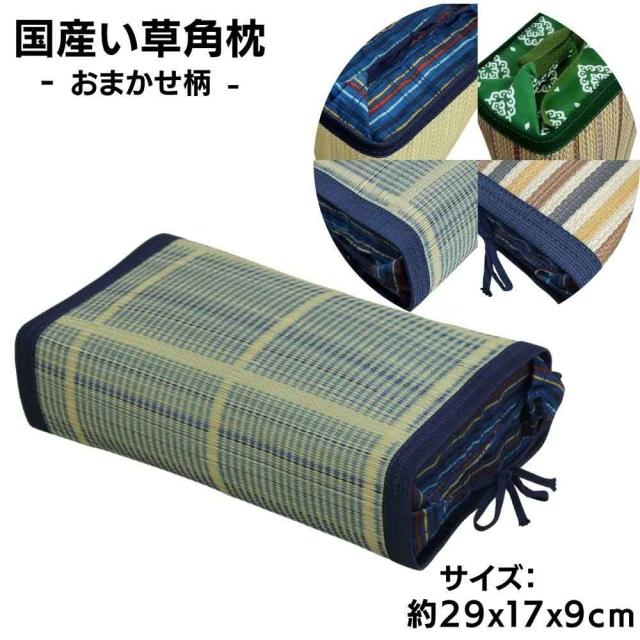 国産い草枕 柄はおまかせ 角枕 PPパイプ使用 日本製 29x17x9cm