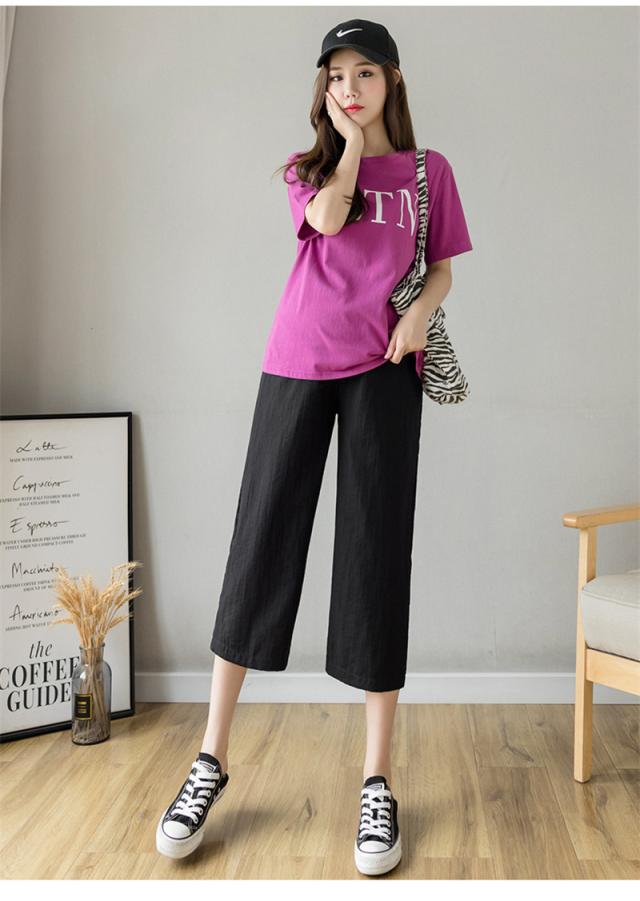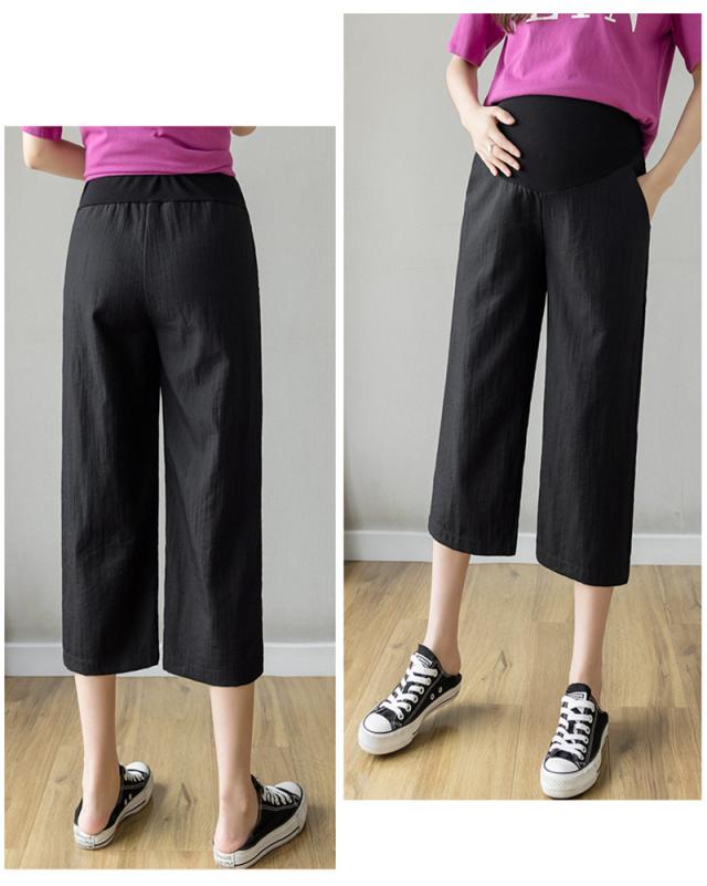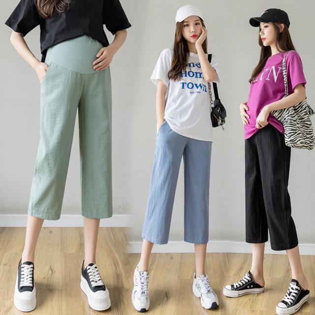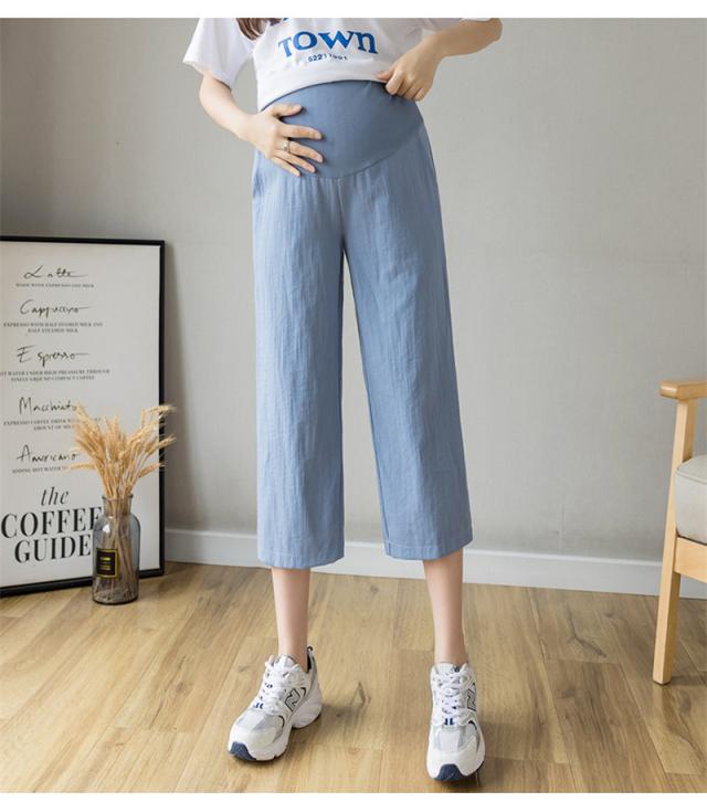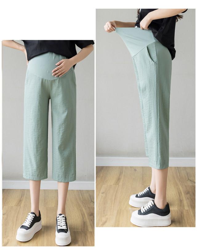 マタニティパンツ ワイドパンツ リネンパンツ 夏 七分丈 アジャスター付き 腹包み 妊娠 妊婦 ストレッチ 産前 産後 ゆったり