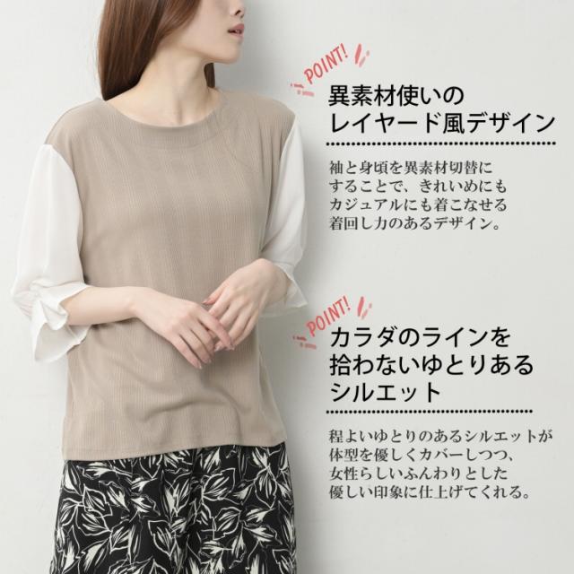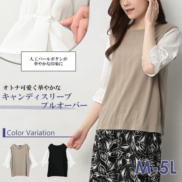 【メール便対応】キャンディ袖が大人可愛く華やかな印象のプルオーバー。 5分袖トップス 30代 40代 50代 春服 夏服 秋服 春物 夏物 秋物 二の腕カバー おしゃれ きれいめ かわいい ゆったりサイズ ぽっちゃり女子 プラスサイズ 大きいサイズ レディース 5分袖トップス 5分袖カットソー 5分袖プルオーバー 切り替えカットソー 袖切り替え 5分袖 五分袖 7分袖 七分袖 JOZ 異素材切り替え 透け感 キャンディスリーブ ギャザースリーブ 袖コンシャス パールビーズ Uネック クルーネック ラウンドネック 丸首 春服 夏服 秋服 春物 夏物 秋物 春トップス 夏トップス 秋トップス 重ね着風トップス フェイクレイヤード ストレッチ素材 よく伸びる 伸縮 二の腕カバー 体型カバー ゆったり 大きめ 大人 カジュアル フェミニン ナチュラル きれいめ かわいい かっこいい 着こなし おしゃれ 定番 春コーデ 夏コーデ 秋コーデ ファッション 大きめ 女性 婦人用 ミセス 30代 40代 50代 2023 春 夏 秋 黒 M LL 3L 4L 5L 9号 13号 15号 17号 19号 coe-ssa-tp0175