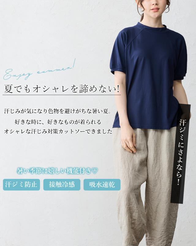 春新作 新作 新着 Tシャツ カットソー レディース トップス ラグラン 半袖 汗ジミ防止 レディース 日本製 接触冷感 ひんやり 夏の汗ジミにさようなら 汗じみ防止 冷感 綿 コットン 大きいサイズ 大きめ ゆったり 体型カバー 綿100% 綿 撥水 UVカット 夏 春 秋 柔らかい