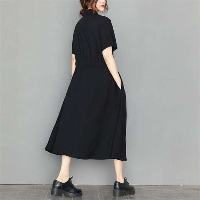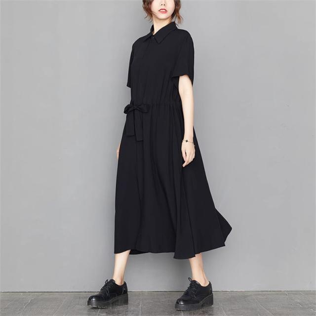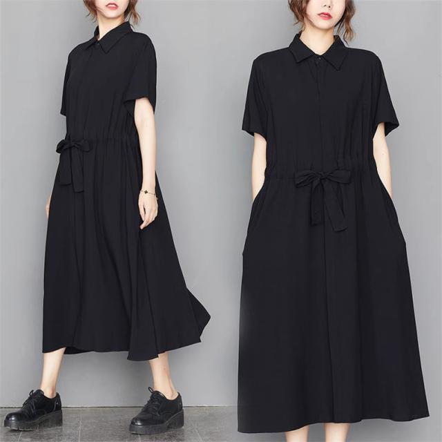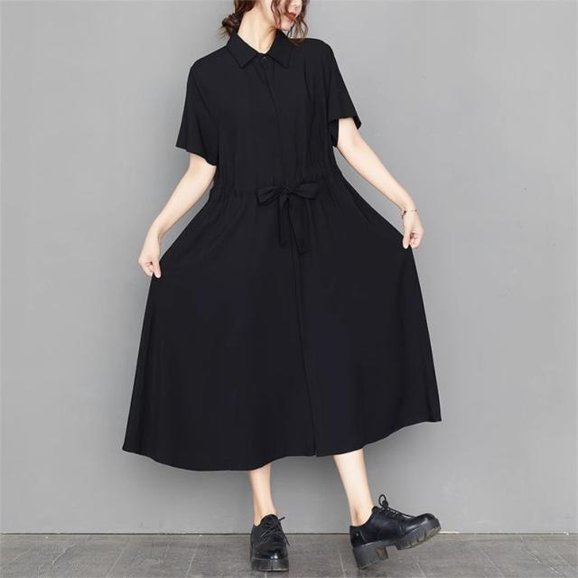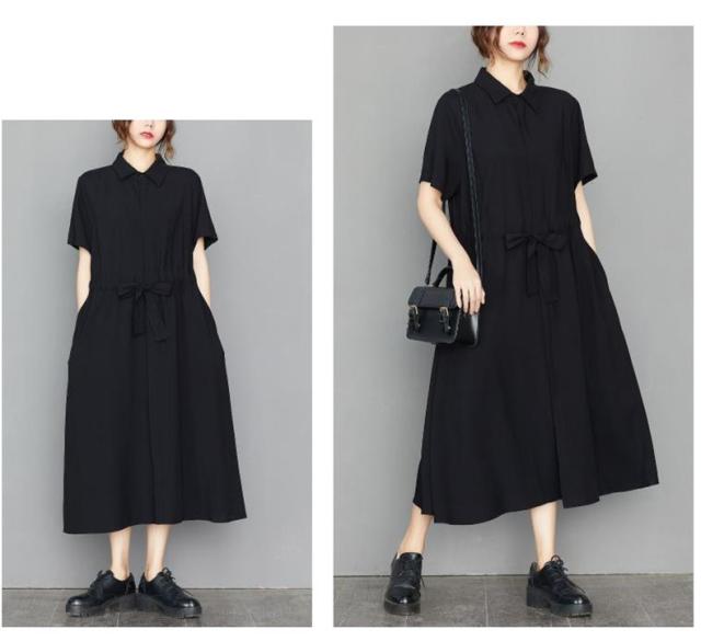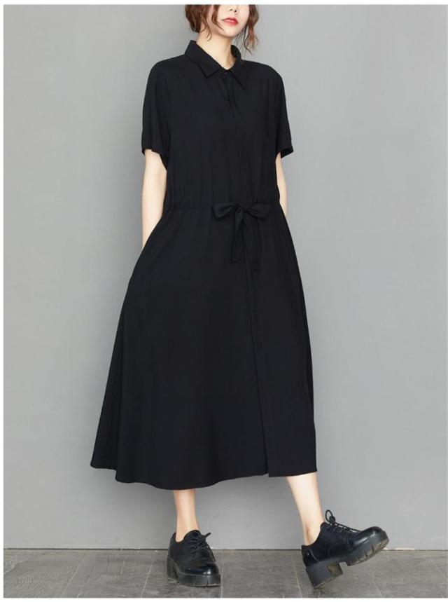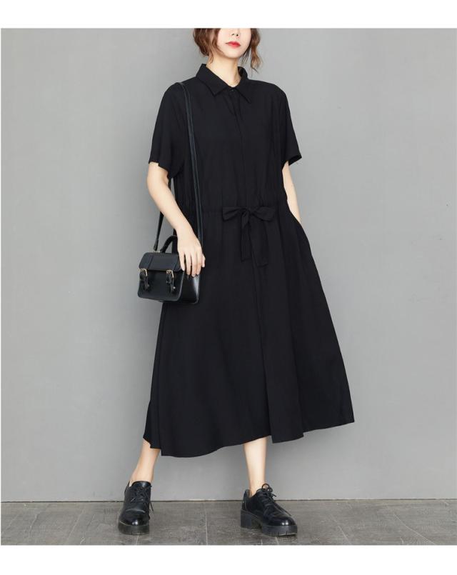 ロングワンピース シャツワンピ 半袖 レディース 自然に体型カバー すっきり オシャレ 大きいサイズ 大人っぽく着こなせる