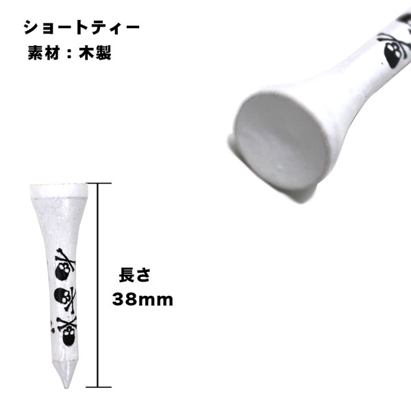 送料無料 ゴルフ ティー golf ショートティー 30本 38mm セット ドクロ柄 ショートティゴルフ用品 ラウンド アイアン ゴルフティー
