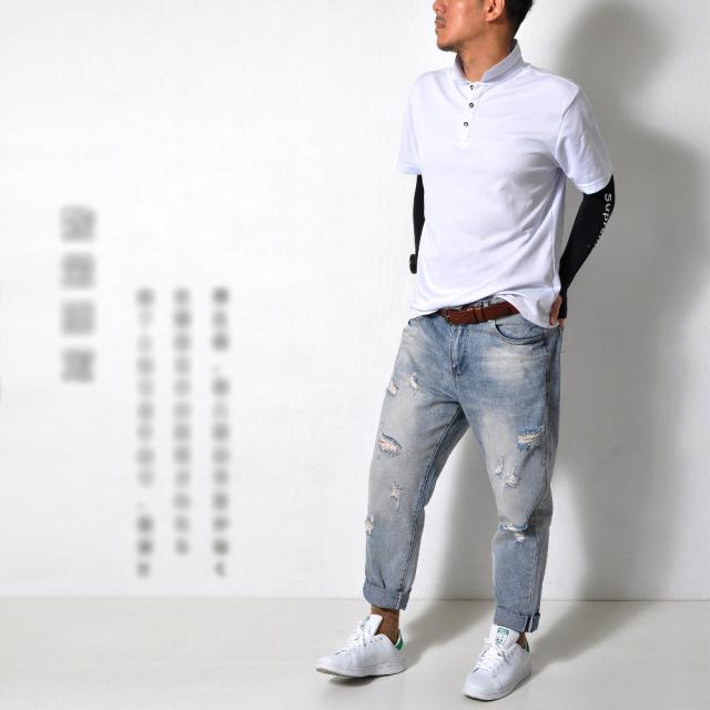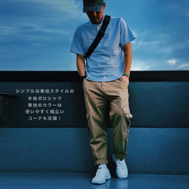 シンプルな無地スタイルの半袖ポロシャツ無地のカラーは使いやすく幅広いコーデに活躍