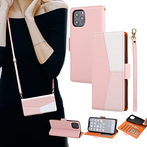 Handodo iPhone 13 Proケース 手帳型 ストラップ付き iPhone 13 Proケース ショルダー iPhone 13 Proケース おしゃれ 韓国 高?PUレザー