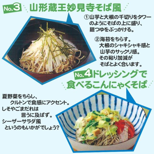 日本の伝統食である「そば」と「こんにゃく」の組み合わせは、舌触り、歯ごたえ、弾力性ともに申し分なし。