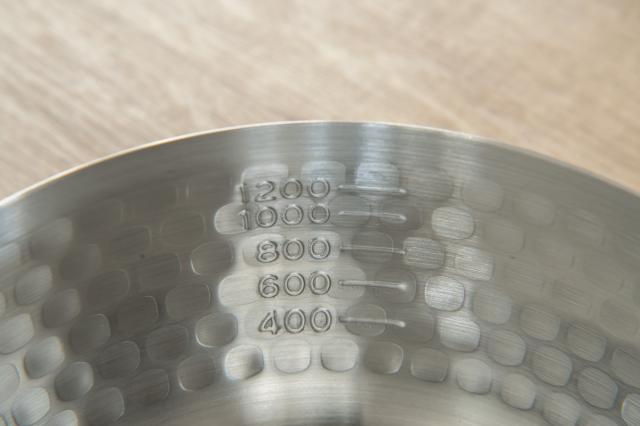 内側には1200mlまで測れる目盛りがついているので、分量が一目で分かります。