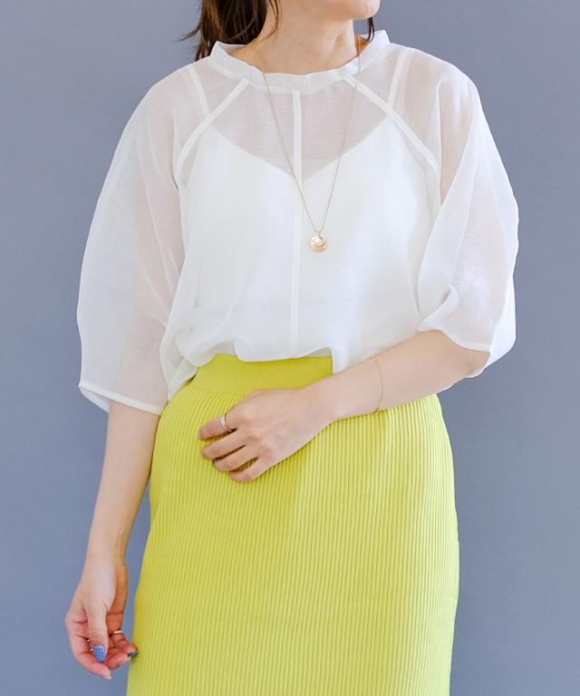 程よい透け感のある素材を使用したシアーリネントップス