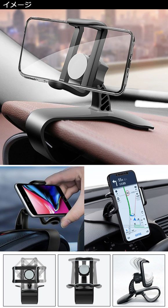 ダッシュボードやバイザーなどに装着可能な車載ホルダーです。
