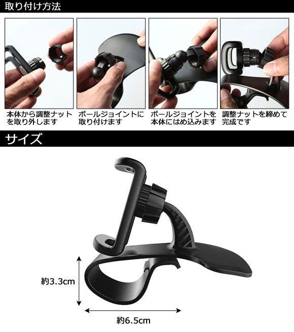 スマートフォンホルダー ABS製 クリップ式 汎用 車載用 お好きな場所にはさむだけ!簡単取り付け AP-AS886