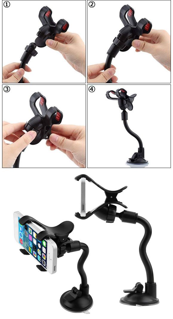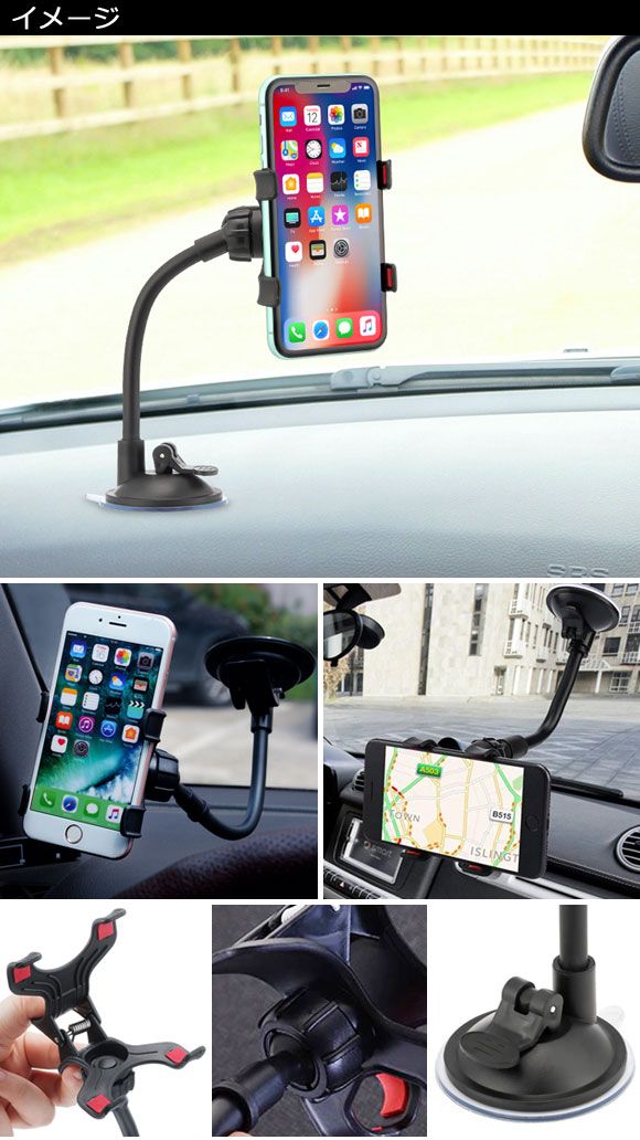 ガラス面やダッシュボードに装着可能な車載ホルダーです。
