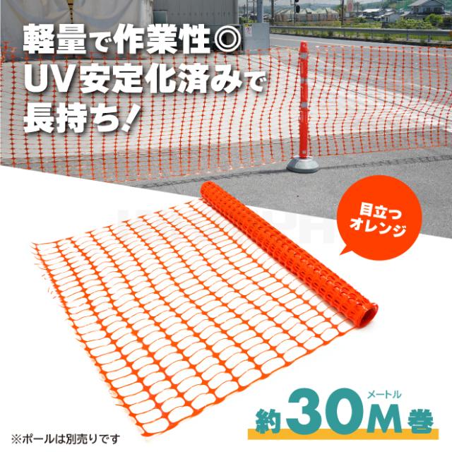 ネットフェンス 約1.2m×30m オレンジ HDPE 長持ち ストロングタイプ メッシュフェンス 仮設ネット 動物よけ 仮囲い バリケード 簡易 多用途 KIKAIYA