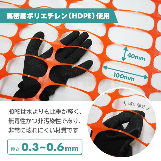 軽くて長持ち!建設現場などの仮囲いに ●動物よけや、建設現場などの仮囲いに便利なネットフェンス 現場の安全通路確保に活躍します ●軽量で非常に壊れにくい材質の、高密度ポリエチレン(HDPE)使用 ●UV安定化済みで長持ちします ●ネットはハサミで簡単にカットでき、リサイクル可能です ●ポールやロープスティックをネットに通して設置したり、結束バンドなどで支柱等に 固定してお使い下さい 【関連商品】 ネットフェンス ポール 5本セット ロープスティック 1500mm 10本セット ロープスティック 1450mm 丸形 10本セット 【用途】 ・建設現場や工事現場などの防護壁 ・仕切り、安全通路の確保 ・農作物の保護、動物侵入防護 ・敷地の仮囲いや区切り ※お使いのモニター設定、お部屋の照明等により、実際の製品と色味や素材感が 異なる場合がございます 品番:NETP-1 |