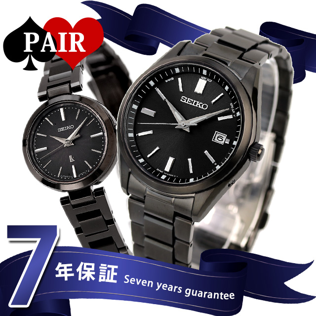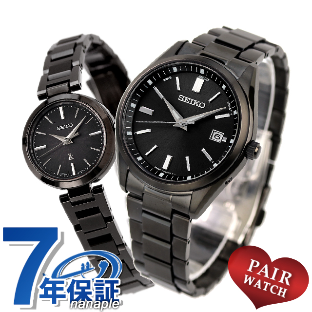 正規品 7年保証キャンペーン 送料無料 ペアウォッチ セイコー セレクション ルキア ミニソーラー 日本製 電波ソーラー ソーラー メンズ レディース 腕時計 pair-seiko90 ペアウォッチ The Standard アナログ ◆セイコーセレクションとルキアの組み合わせをななぷれが提案♪ メンズモデルは質感の高いソーラー電波時計。略字は別体の金属パーツとすることで、インデックスの質感を高めています。針にはルミブライトが使用され、夜間を含めた視認性があります。電子りゅうず搭載で、時差修正がより簡単になることに加え、世界5エリア6局(日中米独英)の標準電波を受信します。JIS1種の耐磁対応。レディースモデルは、アクセサリー感覚で使える、ケース径23mmの小ぶりなサイズ感と、機能を絞り込んだシンプルな姿が魅力。ケースとストラップのシャープな造形が光を反射して、小さくても存在感のある仕上がりです。ダイヤルはシアー感のある仕上げで奥行きがあり、繊細な模様をさりげなく楽しめます。プレゼントにもおすすめです。 メンズ品番:SBTM325 レディース品番:SSVR141