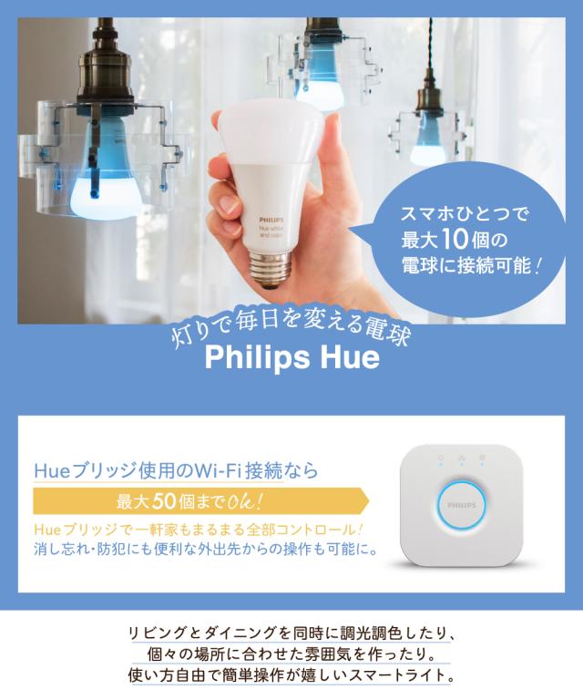 【Philips Hue】 スマートライト ブリッジ LED電球 LED 電球 E26 E17 調光 調色 フルカラー 電球色 白色 Wi-Fi スマホ Bluetooth 日本正規品 アレクサ対応 リモコン 遠隔操作 センサー 照明 電気 ライト Philips Hue フィリップスヒュー ヒューブリッジ