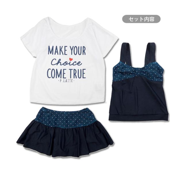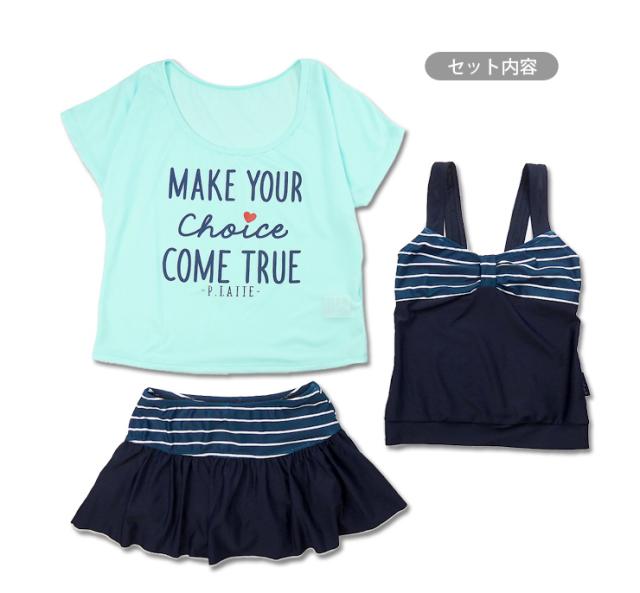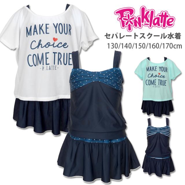 PINK-latte キッズ・ジュニア女児用セパレートスクール水着 130 140 150 160 170 ピンクラテ タンキニ 3点セットアップ No.sw3352