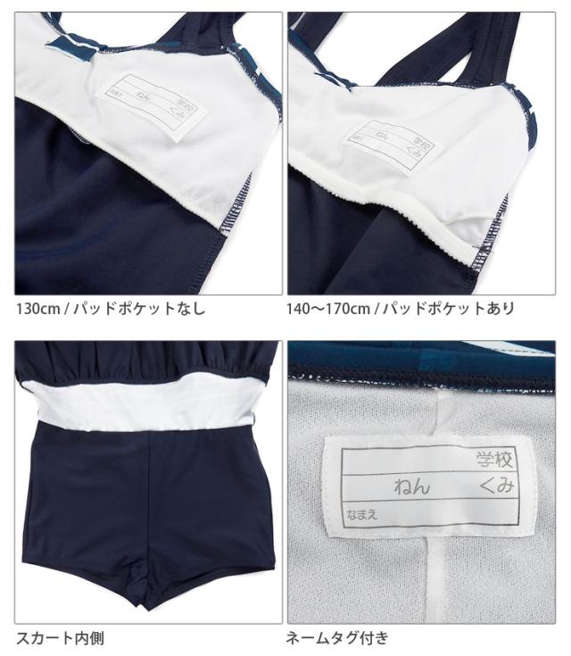 140cm以上のサイズはパッド付きなので、ジュニア女児にも安心です。