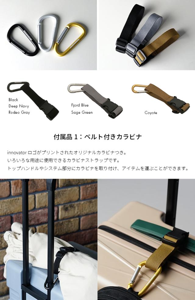 | ブランド |innovator / イノベーター シリーズ |CARRY WAGON / キャリーワゴン 品番 |IW66 形状 |スーツケース / キャリーケース |Mサイズ 受託手荷物規定内 総外寸 |W400×H680×D330[mm] 重量 |約 3.7kg 容量 |約 75L 滞在目安 |4〜6泊程度 主素材 |ポリカーボネート 付属 |ベルト付きカラビナ |大容量収納袋(ブランドロゴ入り) |収納ポーチ 保証 |日本正規品 2年保証 ATTENTION ※TSAロックについて このスーツケースのTSAロックはダイヤルコンビネーションロックです。鍵穴はTSA職員が緊急の際に解錠して検査を行うためのものであり、差し込み式のキーは付属しておりません。 |
