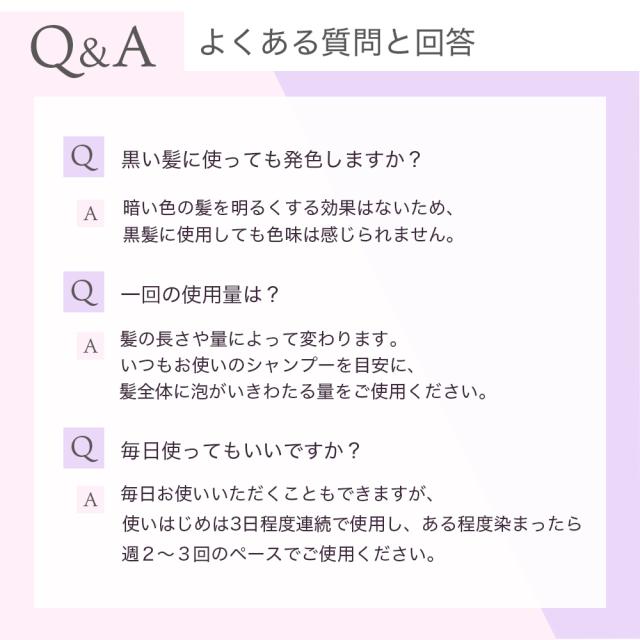 ●洗面台や浴槽などにカラーシャンプーがついたままになると色が落ちにくい場合がありますので、すぐに洗い流してください。