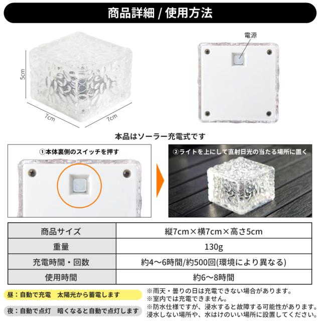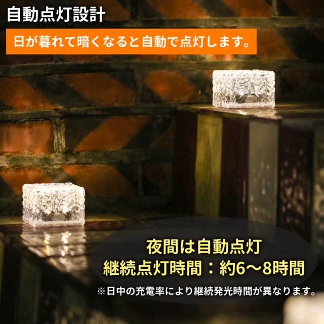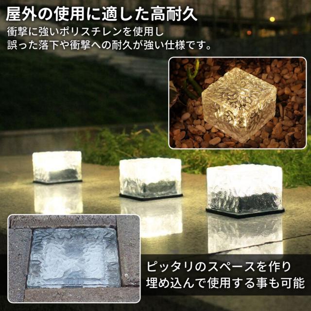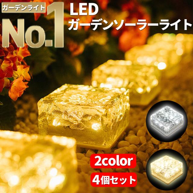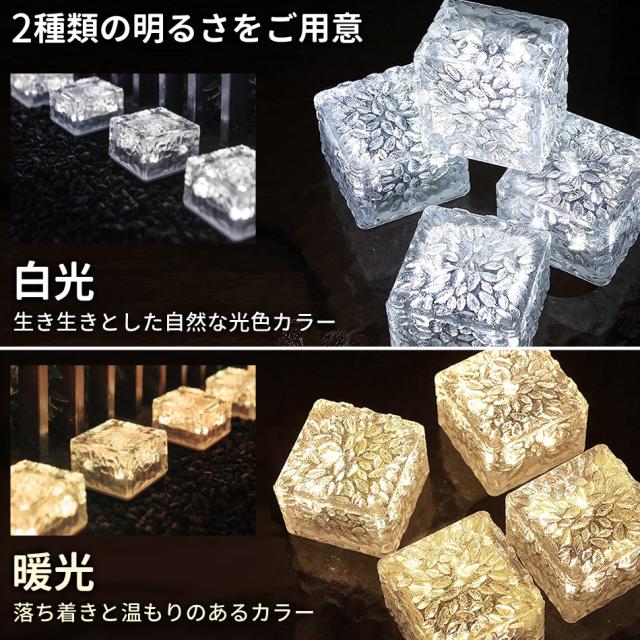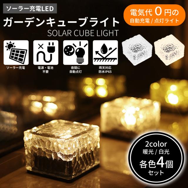 ソーラーライト ガーデンライト キューブライト 4個セット 防水IP65 埋込 屋外 防水 防犯 暖光 白光 クリスタルガラス調 夜間自動点灯 送料無料