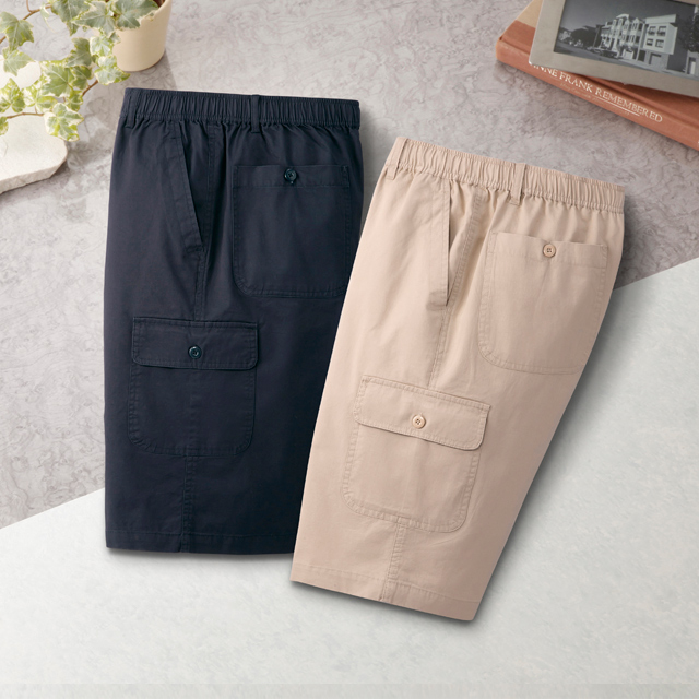暑い夏の季節にぴったりな綿100%カーゴハーフパンツ・・・お得な2色組で登場!