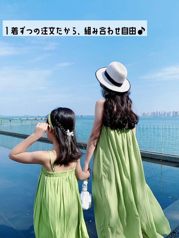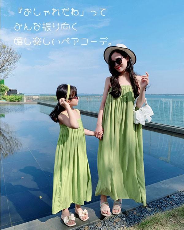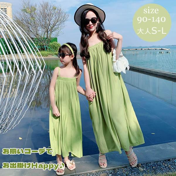 ワンピース キャミソール レディース 親子コーデ 子供ワンピース カジュアル ママ 母 キッズ 親子 シンプル ペアルック 韓国 かわいい グリーン リゾート 沖縄 夏ワンピ 子供 キッズ bi108zezezr