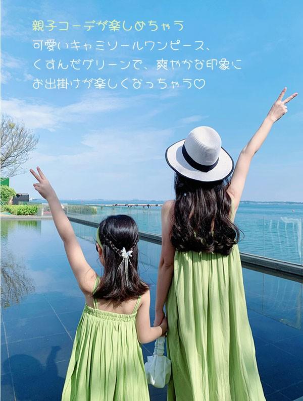 ワンピース キャミソール レディース 親子コーデ 子供ワンピース カジュアル ママ 母 キッズ 親子 シンプル ペアルック 韓国 かわいい グリーン リゾート 沖縄 夏ワンピ 子供 キッズ